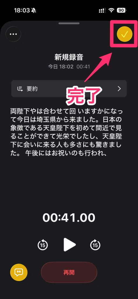 該当箇所をタップすれば、その部分の音声をすぐ再生できます。
