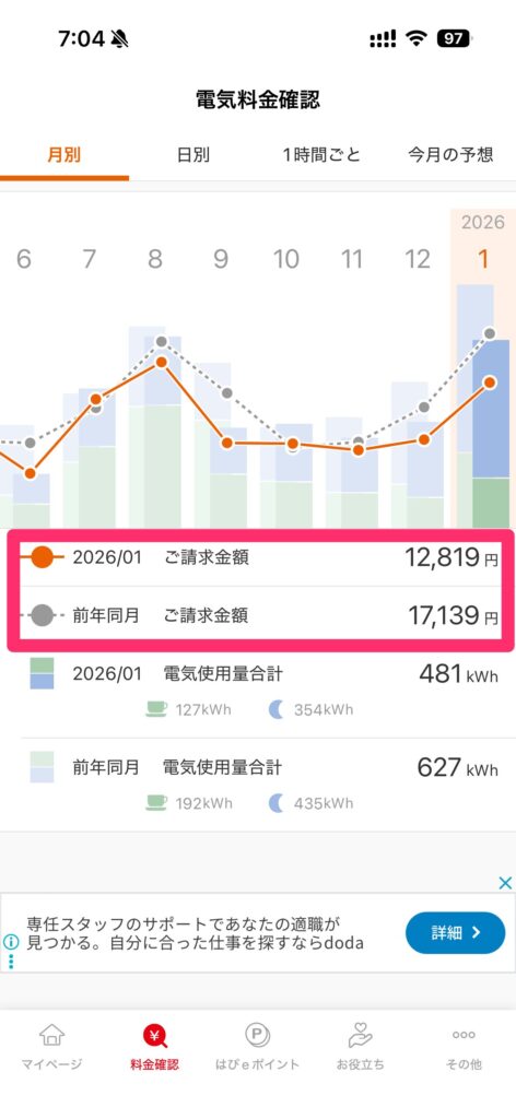 今年は電気毛布を使用に前年は暖房エアコンを使用していました。(オール電化の家庭)