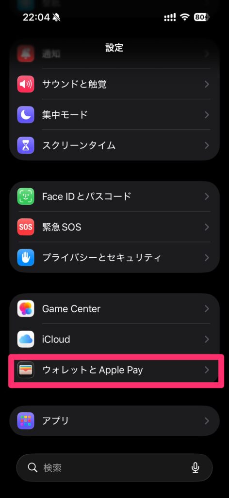 2️⃣ 「ウォレットとApple Pay」をタップ