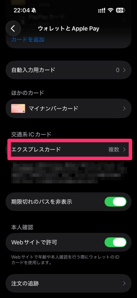 まず確認すべきは iPhoneウォレットのエクスプレス設定 です。