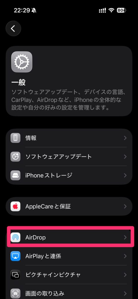 AirDropが使えないときは、まず受信設定を確認しましょう。