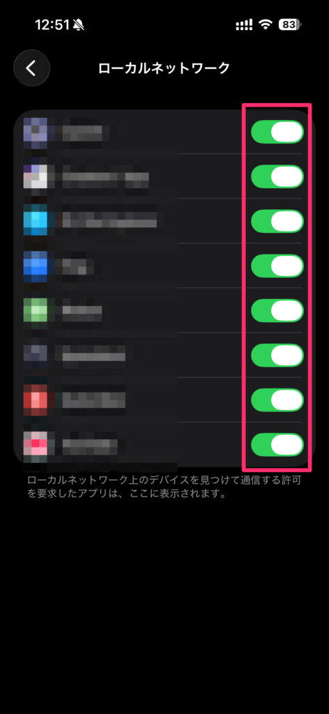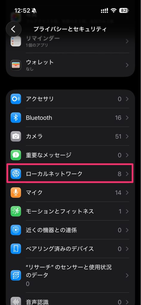 まず確認すべきは「ローカルネットワーク」の許可設定です。