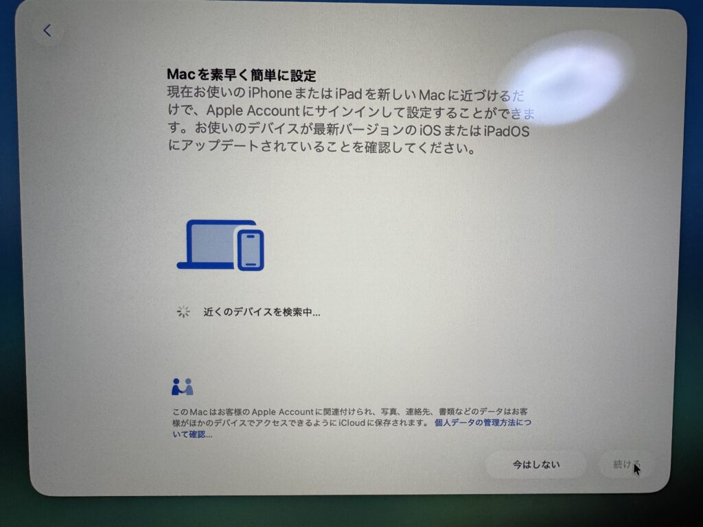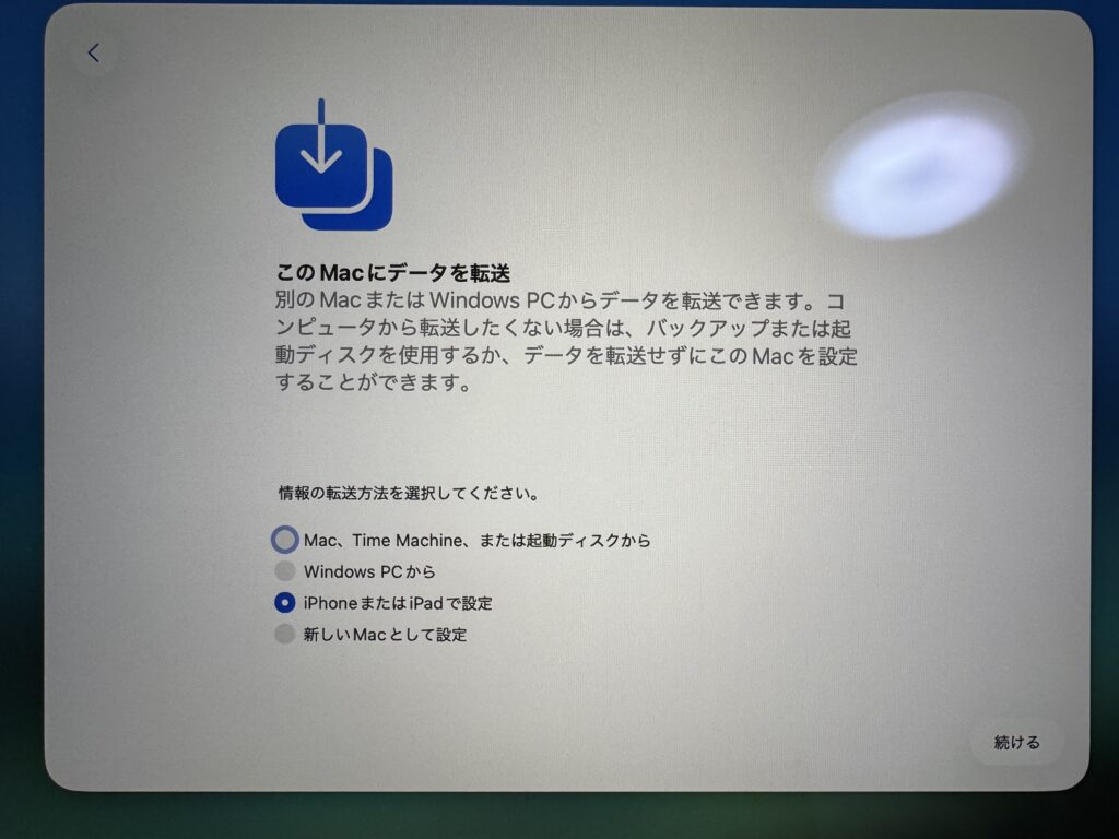 「iPhoneまたはiPadで設定」+ユニバーサルコントロールという方法でセットアップとデータ移行を行いました。
